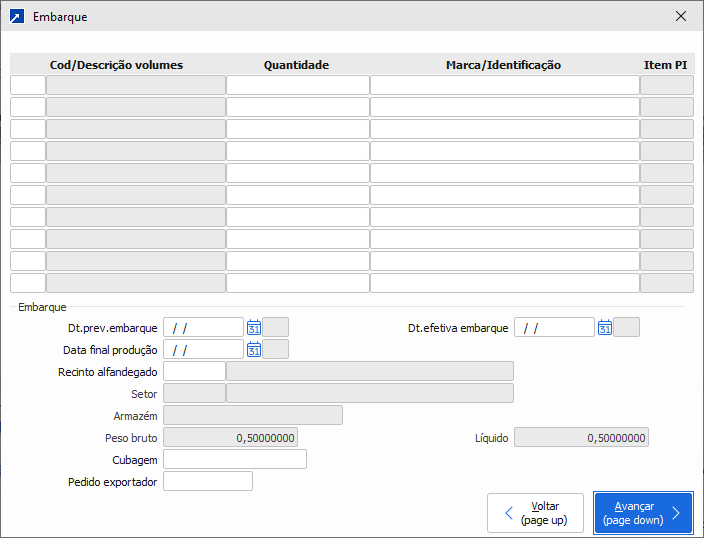 Obs.:Se não informado (permite passar em branco), irá carregar o exportador com base nos itens do PO inclusos no processo.