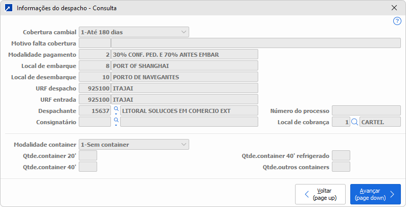 Será obrigatório o preenchimento dos campos "Modalidade de pagamento", "Local de embarque", "Local de desembarque", "URF despacho" e "URF entrada".