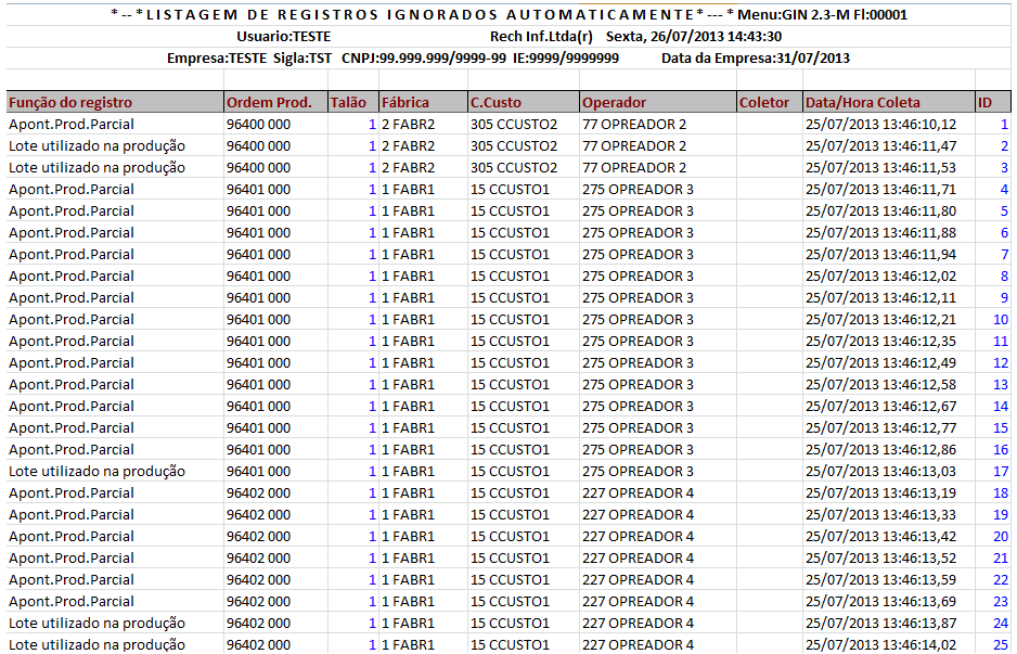 Ao entrar nas opções GIN 2.3-M/K/U e possuir valor informado no parâmetro "Dias para ignorar registros não processados", é exibida uma mensagem questionando se deseja ignorar automaticamente todos os registros não processados com data de coleta anterior (e inclusive) a data atual menos a quantidade de dias informados. Se confirmar, será exibida uma listagem dos registros que foram ignorados automaticamente.