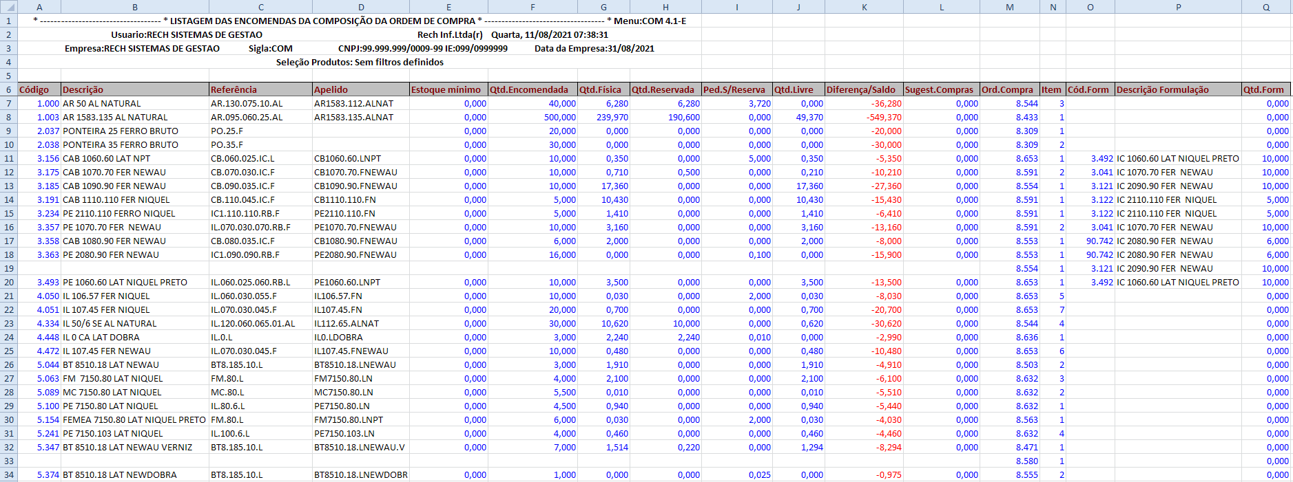 Cálculo: [Ped.S/Reserva] - [Qtd.Livre] - [Qtd.Encomendada]