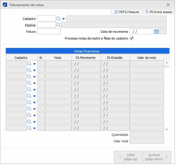 Localize a nota fiscal desejada (Indicar o cadastro do cliente, a espécie do documento e o nº da fatura).