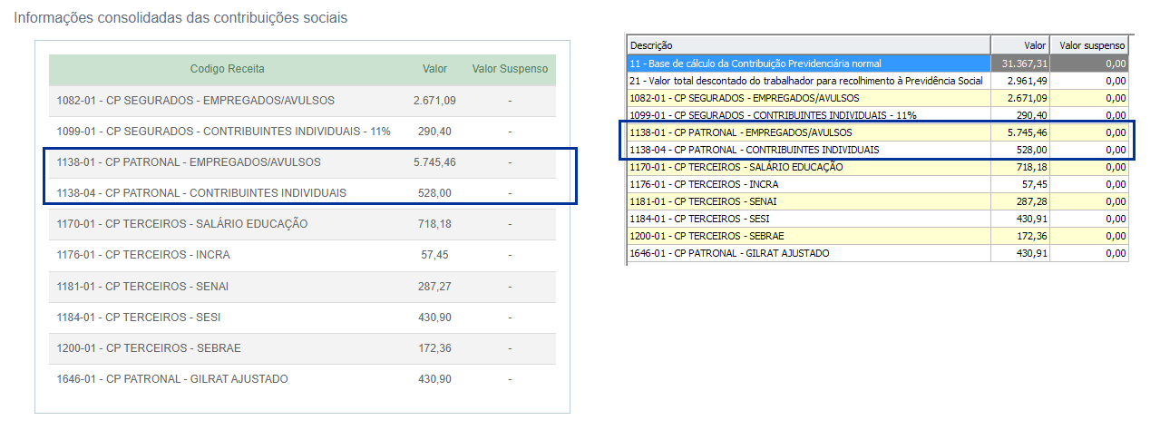 Usando a aba “Tot. INSS por funcionário” procure os funcionários para os quais as colunas "Valor" e "Descontado p/Emp." estejam diferentes.