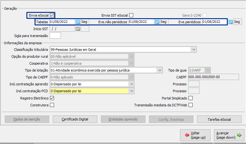 Exemplo: a empresa vai começar a enviar as tarefas para o eSocial a partir do dia 01/08/2022.