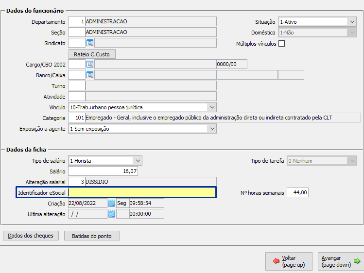 Após ajustar a matrícula em todos os funcionários, será necessário incluir a tarefa do S-2206, menu FPA 7.8-N, com a mesma data das tarefas iniciais e enviar ao eSocial.