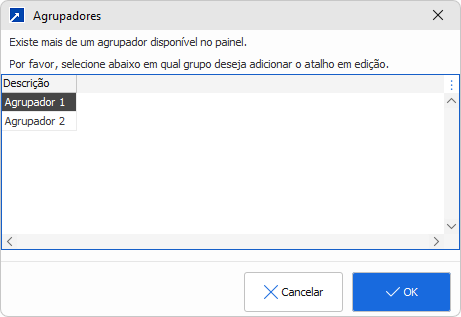 Se houver apenas um agrupador na lista de favoritos, o favorito selecionado será adicionado diretamente a ele. No entanto, se houver mais de um agrupador, uma janela será aberta para permitir a escolha do agrupador ao qual o favorito será adicionado.