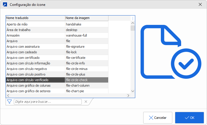 Abre a janela de Configuração de ícone, permitindo alterar o ícone do atalho.