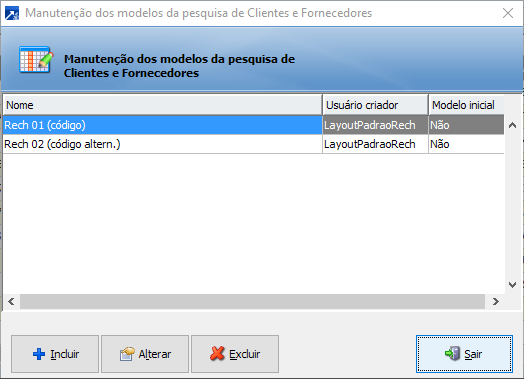 O modelo indicado como inicial será carregado quando a pesquisa for aberta pela primeira vez. Durante o uso do SIGER®, caso um modelo diferente seja selecionado, este passará a ser o modelo inicial durante aquela sessão.