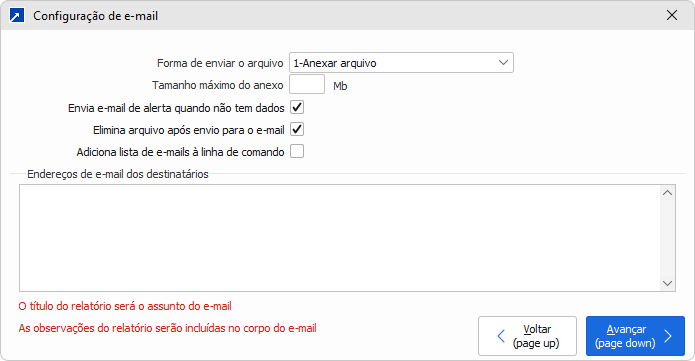 - Nome do arquivo: Diretório completo de onde o relatório vai ser salvo. Precisa conter diretório e o nome do arquivo com extensão, conforme as recomendações.