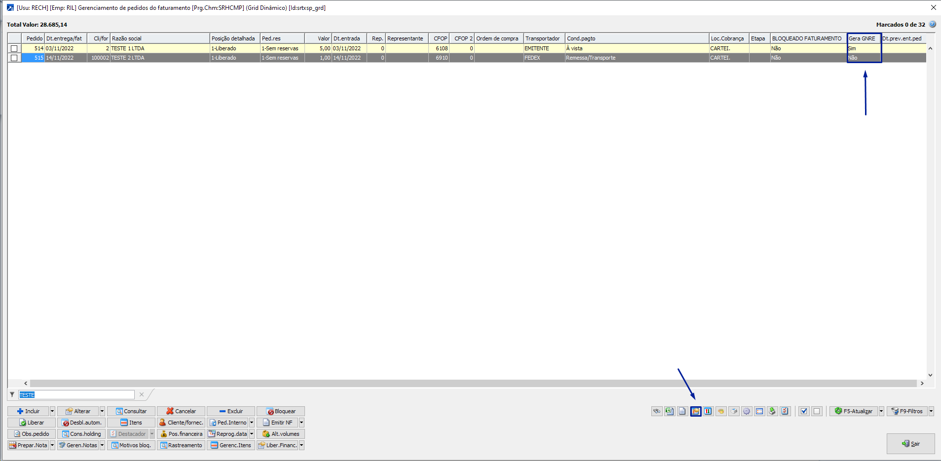 Como controle adicional, é possível configurar no menu FAT 2.1-G a coluna “Gera GNRE”, que irá indicar se o pedido após faturado deverá gerar a GNRE.