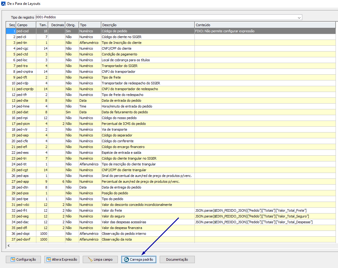 Existe ainda um botão chamado <Carrega Padrão>