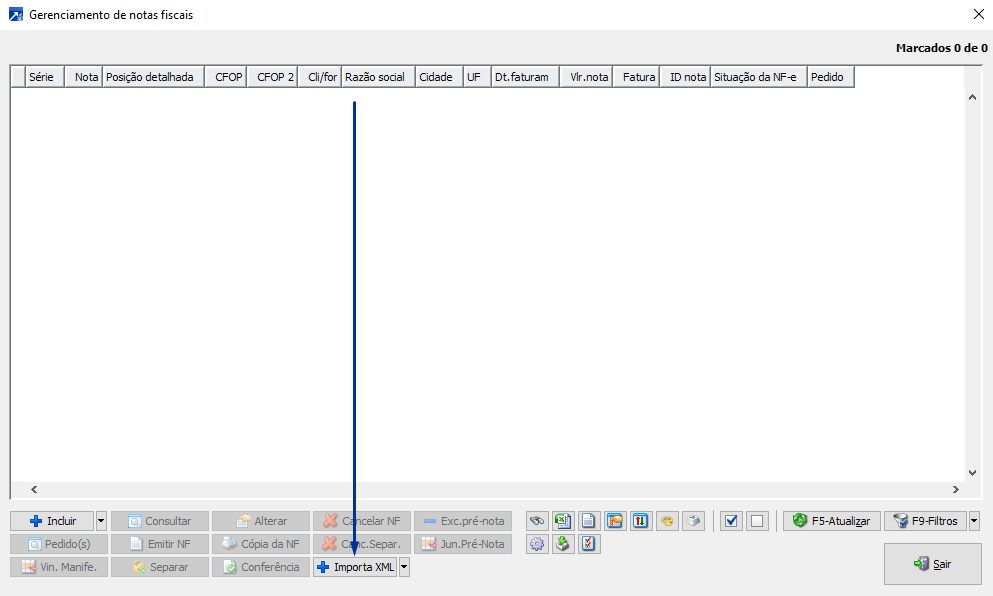 O botão ficará disponível no grid de gerenciamento de notas fiscais.