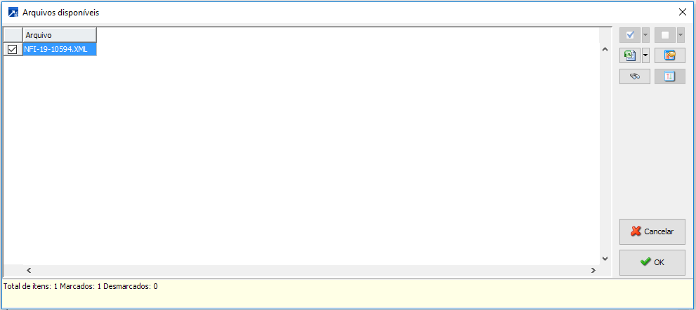 O sistema abrirá um grid para selecionar o arquivo desejado considerando o "Diretório Monitoramento" informado no menu.