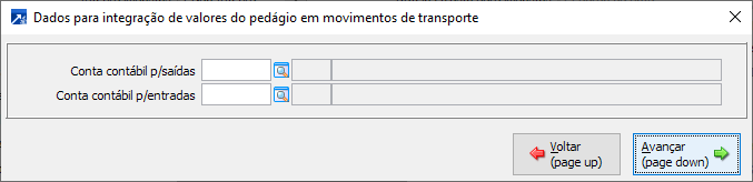 Além desse parâmetro, na mesma janela é possível marcar a opção: "Contabiliza pedágio em conta própria", bem como as contas, para que integração do pedágio ocorra em conta contábil diferente da conta carregada para o valor do CT-e.
