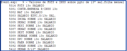 Os pagamentos de 13º salário que ocorrem no mês, serão provisionados na coluna "Pg.cont.Mês" e são compostos pelos eventos utilizados no cálculo do 13º adiantamento, 13º segunda parcela e 13º pago em rescisão.