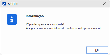 Após confirmar será exibido relatório das gramagens replicadas, ou com motivo de não ser replicada para conferência.