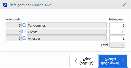 Obs.: A configuração do detalhamento de refeições por público-alvo pode ser feita nos parâmetros de sistema.