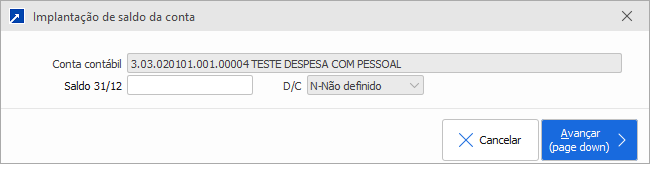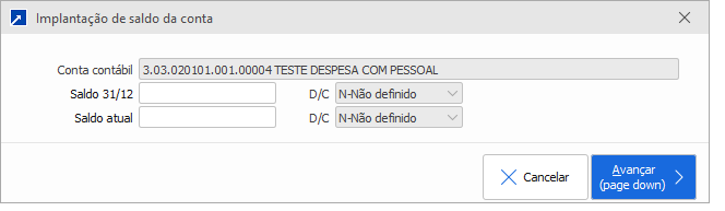 Na implantação do saldo de balanço no exercício anterior, será permitido informar o saldo em 31/12 do exercício anterior.