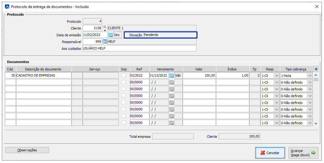 Quando incluso o protocolo, é gravada a situação "1-Pendente", quando emitido passa para situação "2-Emitido", para passar a situação "3-Arquivado" utilizar o recurso arquivar na manutenção consolidada dos protocolos, a situação dos protocolos podem ser gerenciadas na manutenção consolidada dos protocolos.