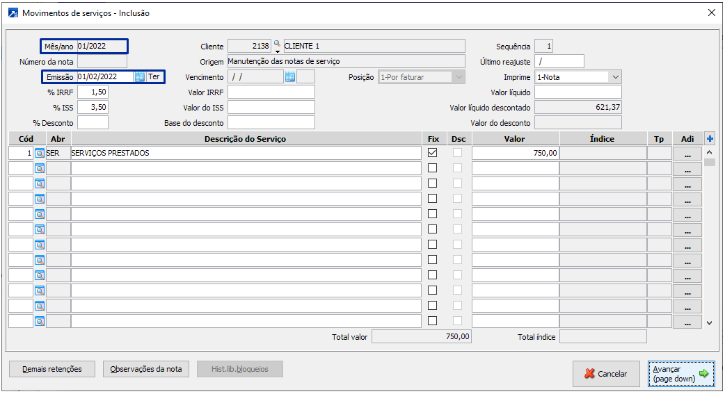 1-Com base na competência da nota: Calcula retenção PIS/COFINS/CSLL/IRPJ com base na competência da nota.