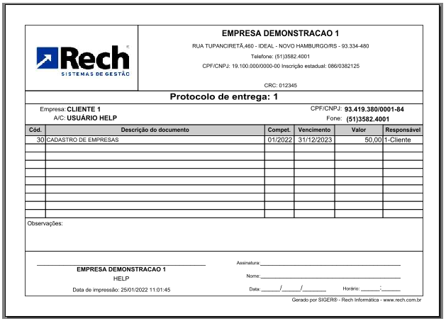 Este campo define o tipo de protocolo para impressão do protocolo de documento, opções disponíveis: