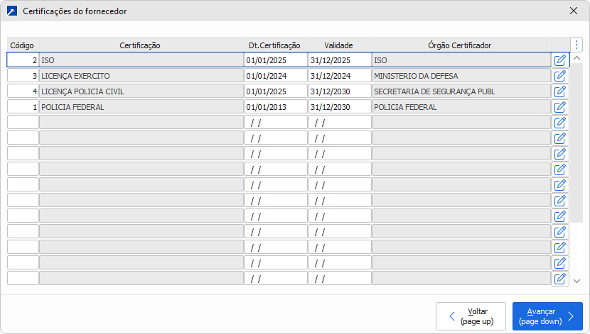 Obs: Se aplica apenas a Cadastro de Fornecedor.