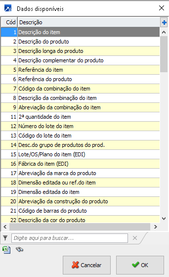 - Se a descrição do item for a descrição do produto, lista a descrição do produto. Ocorrerá a mesma lógica caso a descrição do item for descrição do produto +