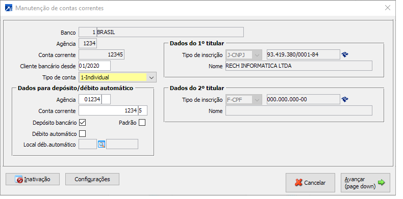 Cadastro de contas para envio de TED/DOC por remessa bancária para o cadastro.