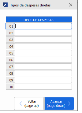 Tipos de despesas