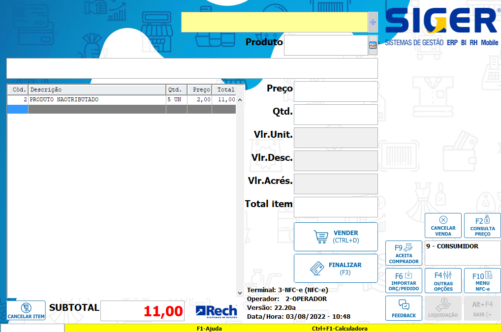 Com um pedido que possui 10 % de acréscimo no item, podemos importar esse pedido no terminal de vendas para emitir uma venda com os produtos deste pedido.
