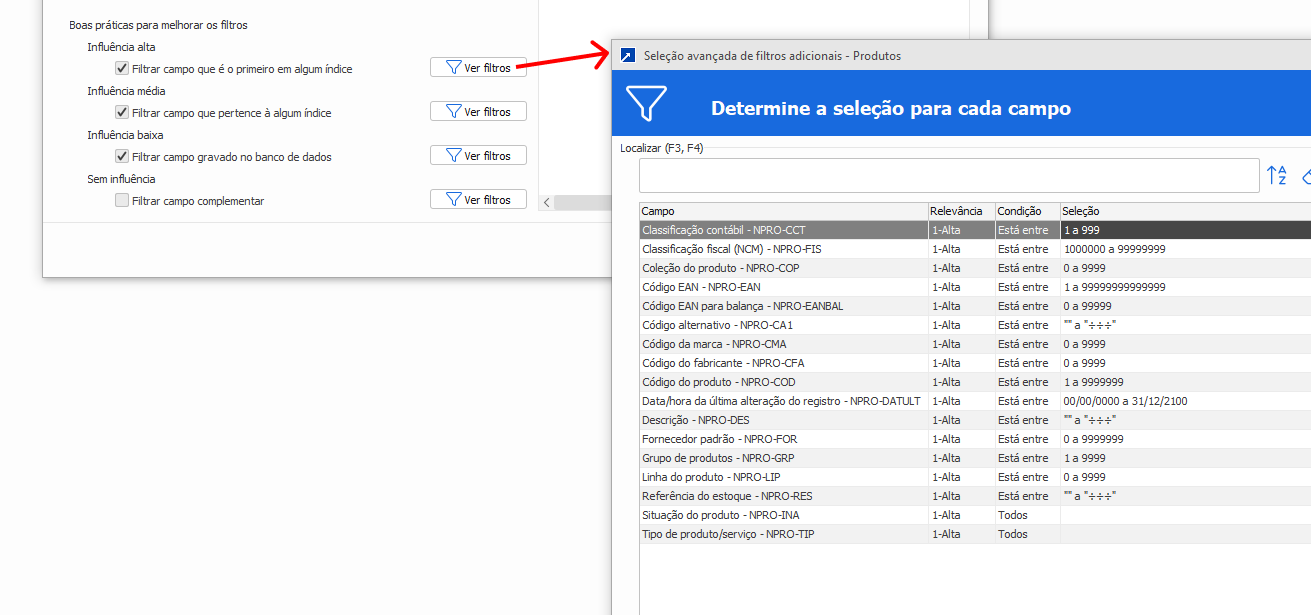 Aqui, são listadas oportunidades de melhoria para os filtros visando melhorar a velocidade de processamento da seleção.