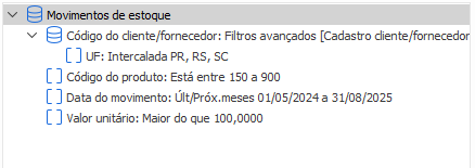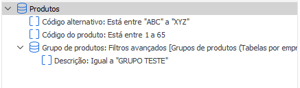 Esta seção da janela mostra uma visualização em árvore com todos os filtros da seleção atual.