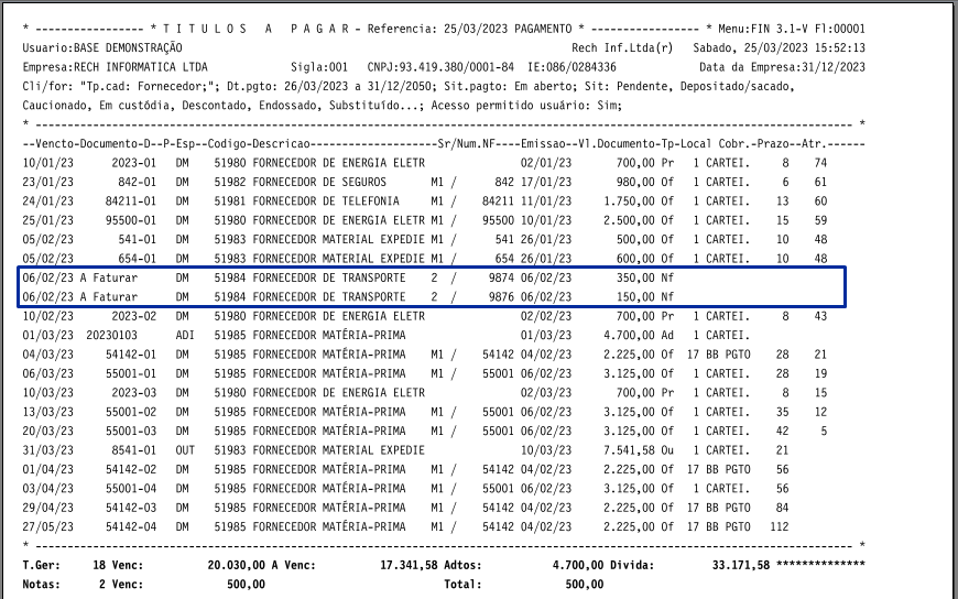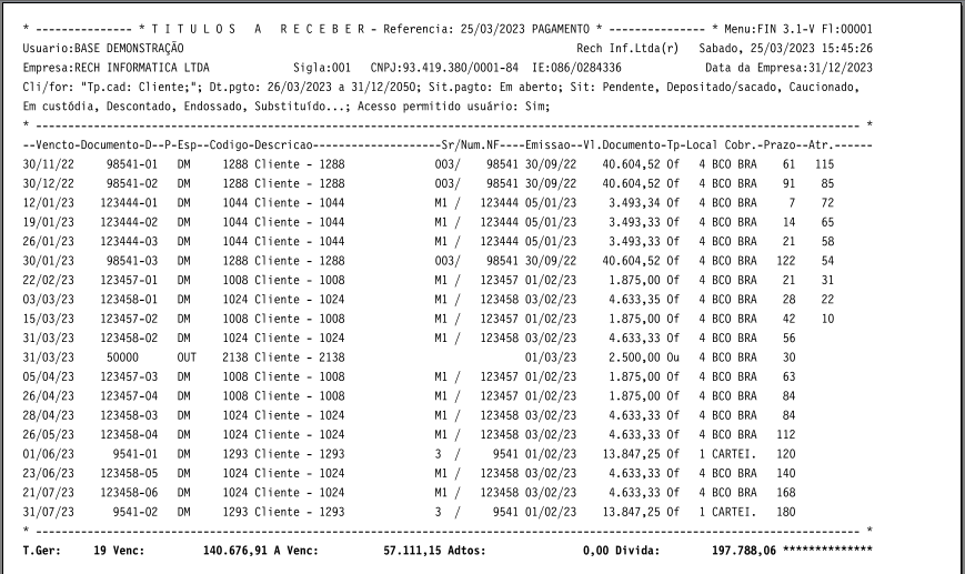 T-Todos: Lista todos os documentos vencidos e a vencer na data de referência.
