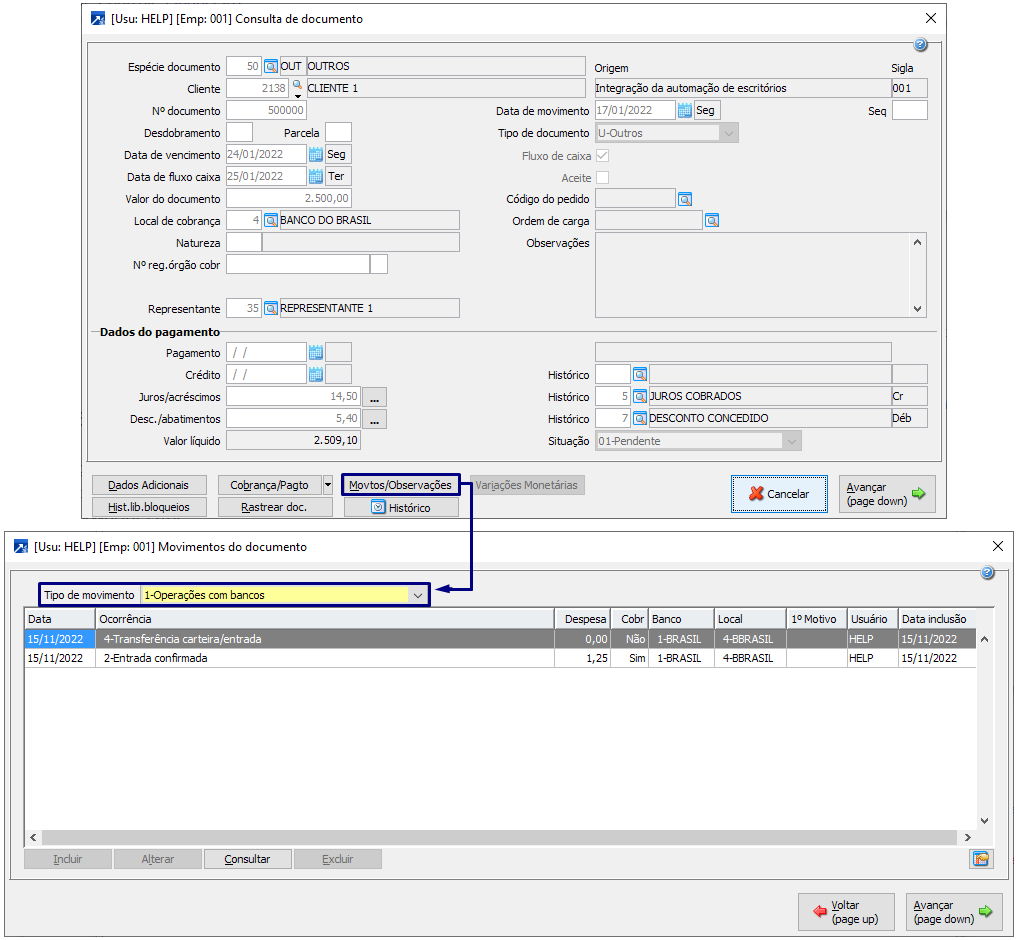 2-Hist.Alterações/Observações: Lista os históricos de alterações e observações dos documentos.