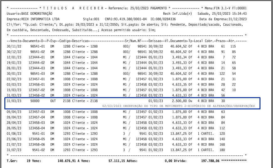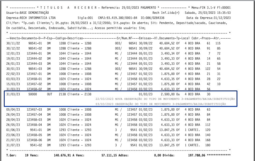 3-Hist.Pagto/Baixa/Substituição: Lista os históricos de pagamento, baixa e substitutição dos documentos.