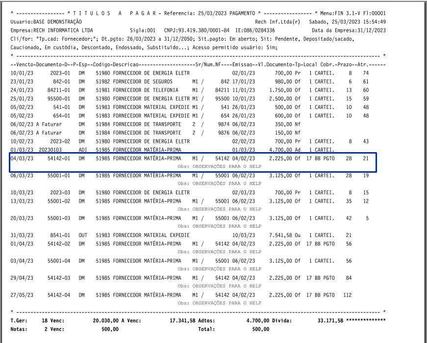 V-Vencidos: Lista apenas documentos vencidos de acordo com a data de referência.