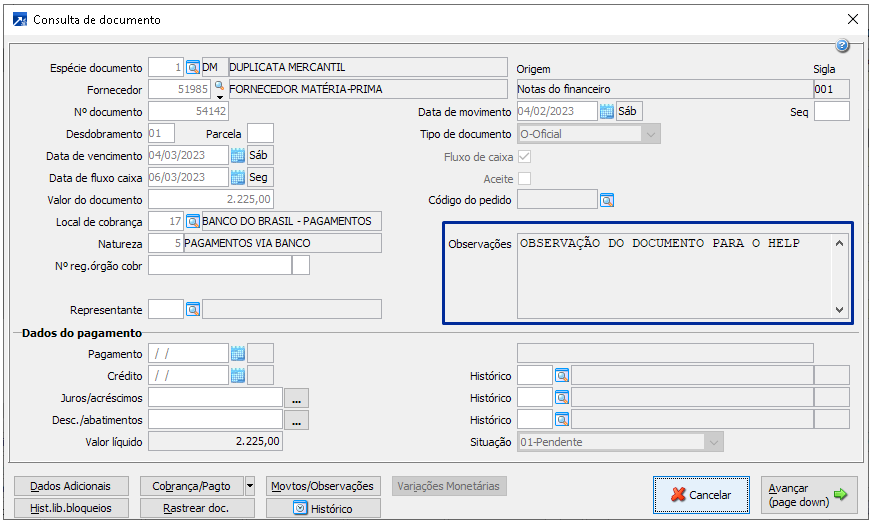 Para identificar o campo "Observações" no documento, vide imagem a seguir.