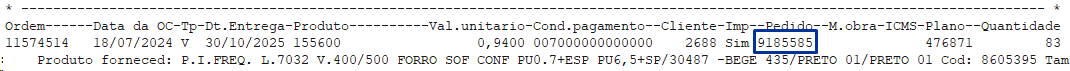 Na coluna “Produto do Cliente”, é apresentado o código do produto informado pela Beira Rio, conforme o layout do arquivo EDI.