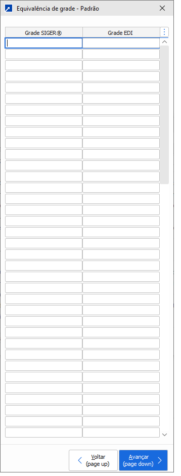 Grade SIGER®: descrição do tamanho da grade cadastrada no SIGER®.