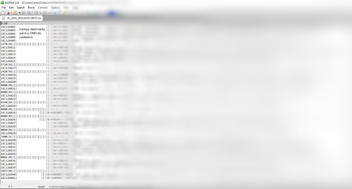 A primeira coluna do arquivo refere-se a respectiva tabela do layout Demander. Arquivo TXT exportado no seguinte layout: