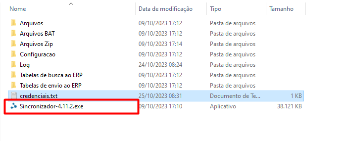 O arquivo a importar deve estar no formato TXT UTF8 e deve estar na pasta configurada no Sincronizador, no campo “Diretório Enviar”.