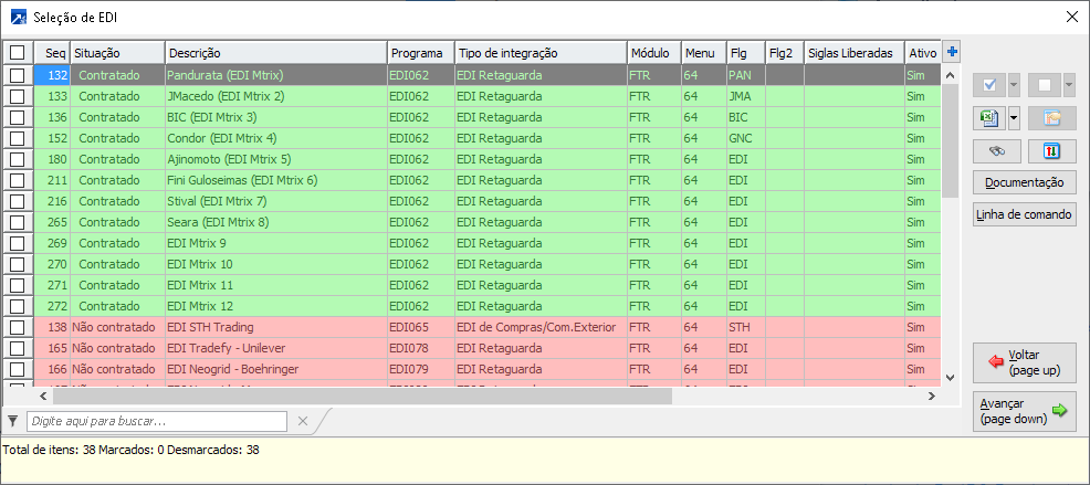 Observação: para exibir a linha de comando, clique no botão <Linha de comando> na janela de "Seleção de EDI" (acima).