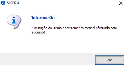ATENÇÃO: Só vai conseguir eliminar último encerramento mensal se se ainda não tiver movimentado no novo mês.