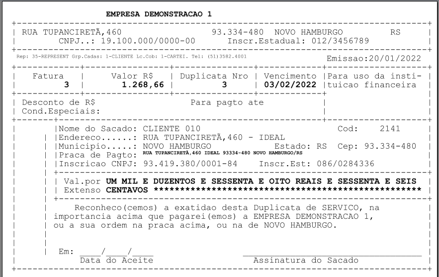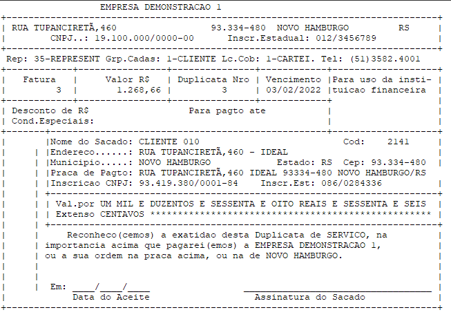 Este campo define as duplicatas que serão emitidas, a partir da data de emissão informada no movimento do serviço, conforme demonstrado na imagem a seguir.
