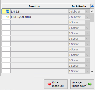 Como no nosso exemplo o valor é pelo líquido, é necessário informar os eventos que deverão subtrai no cálculo do funcionário, por exemplo, INSS e IRRF no botão [Eventos a deduzir].