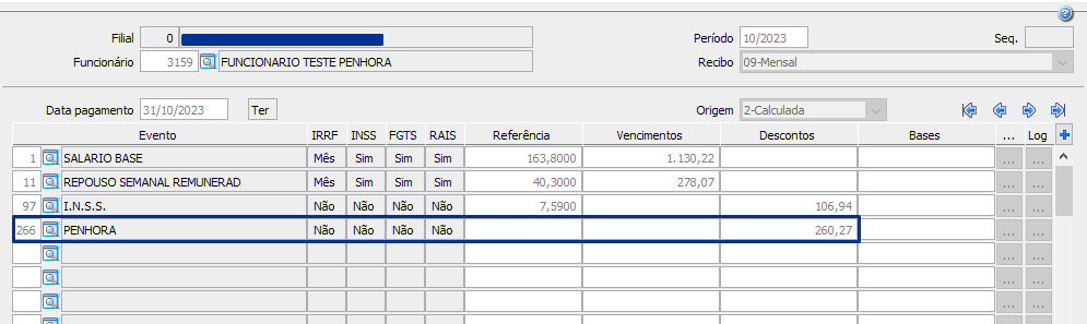 Desta forma, ao calcular a folha mensal menu FPA 3.2-C, SIGER® calculará o valor de desconto referente a penhora, até chegar no valor total a ser descontado do funcionário.