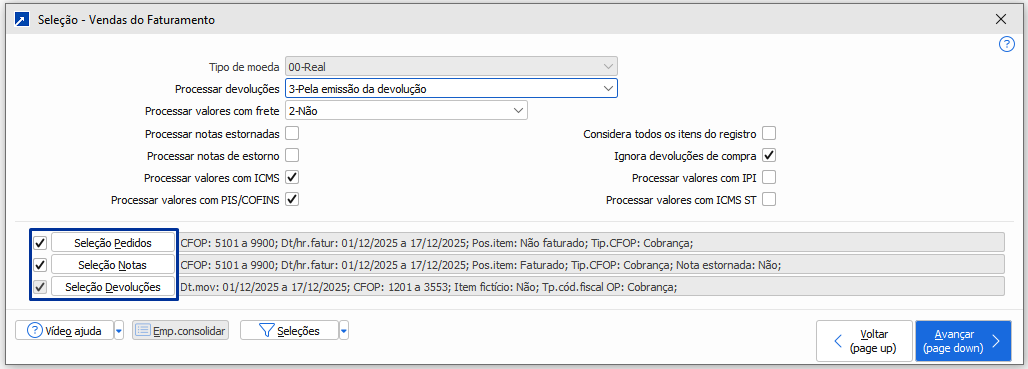 --> Importante: caso o filtro seja montado considerando pedidos e notas, lembre-se de que os pedidos considerados nessa listagem ainda estão com o status "não faturado", ou seja, ainda não foram de fato faturados em uma nota fiscal.