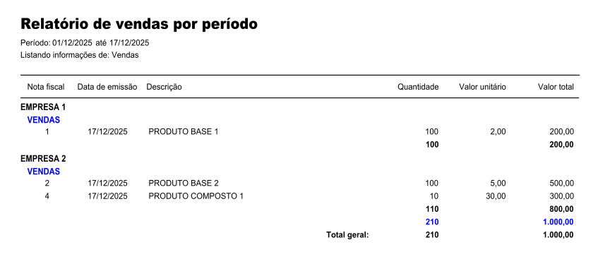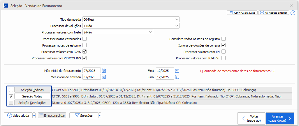 --> Importante: nesse relatório o período máximo de faturamento é de 6 meses.
