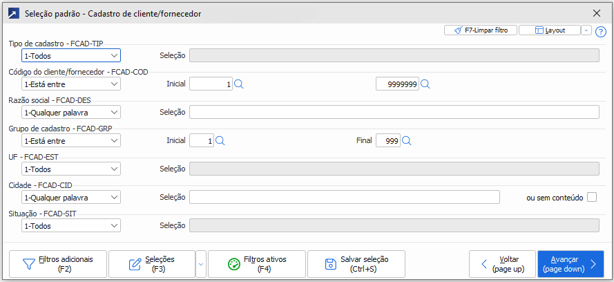 Nessa rotina, é possível filtrar os clientes que deseja ver na listagem de diversas formas.