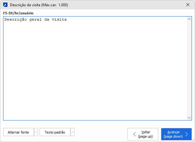 Texto de detalhamento Geral ad visita com até 1.000 caracteres.