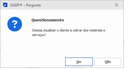 Se está configurado na empresa que permite cobrar material/serviço de um cliente diferente do cliente da OS (+ Saiba mais), será questionado se deseja atualizar.